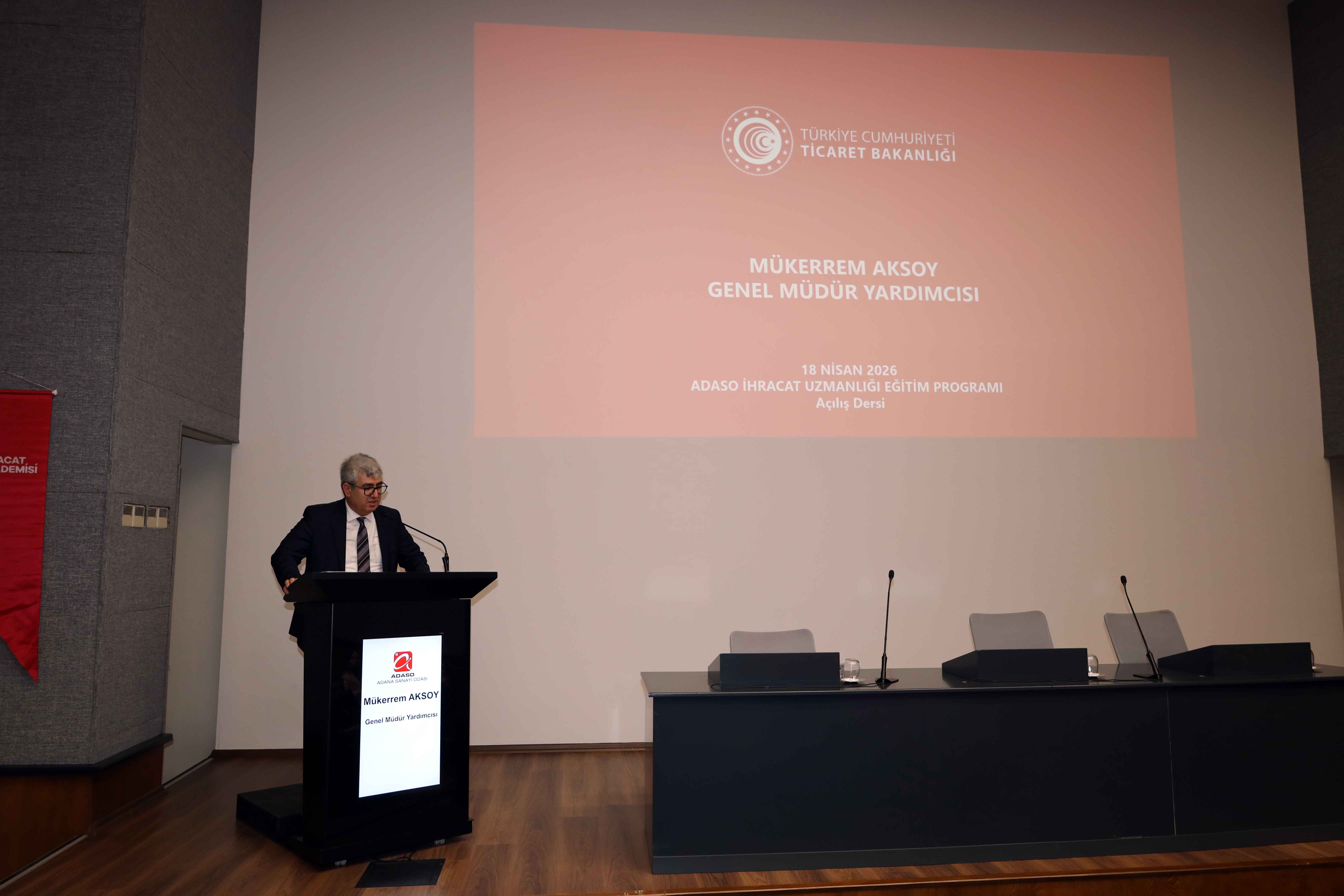 Ticaret Bakanlığı İhracat Genel Müdür Yardımcısı Mükerrem Aksoy da konuşmasında, İhracat Akademisi projesinin Türkiye genelinde 15’in üzerine ulaştığını ve Adana’nın bu projeye dahil edilmesinden memnuniyet duyduklarını ifade etti. Küresel ticarette son yıllarda önemli değişimler yaşandığını belirten Aksoy, artan korumacılık politikaları ve yükselen gümrük duvarlarının ihracatı daha zorlu hale getirdiğini söyledi.