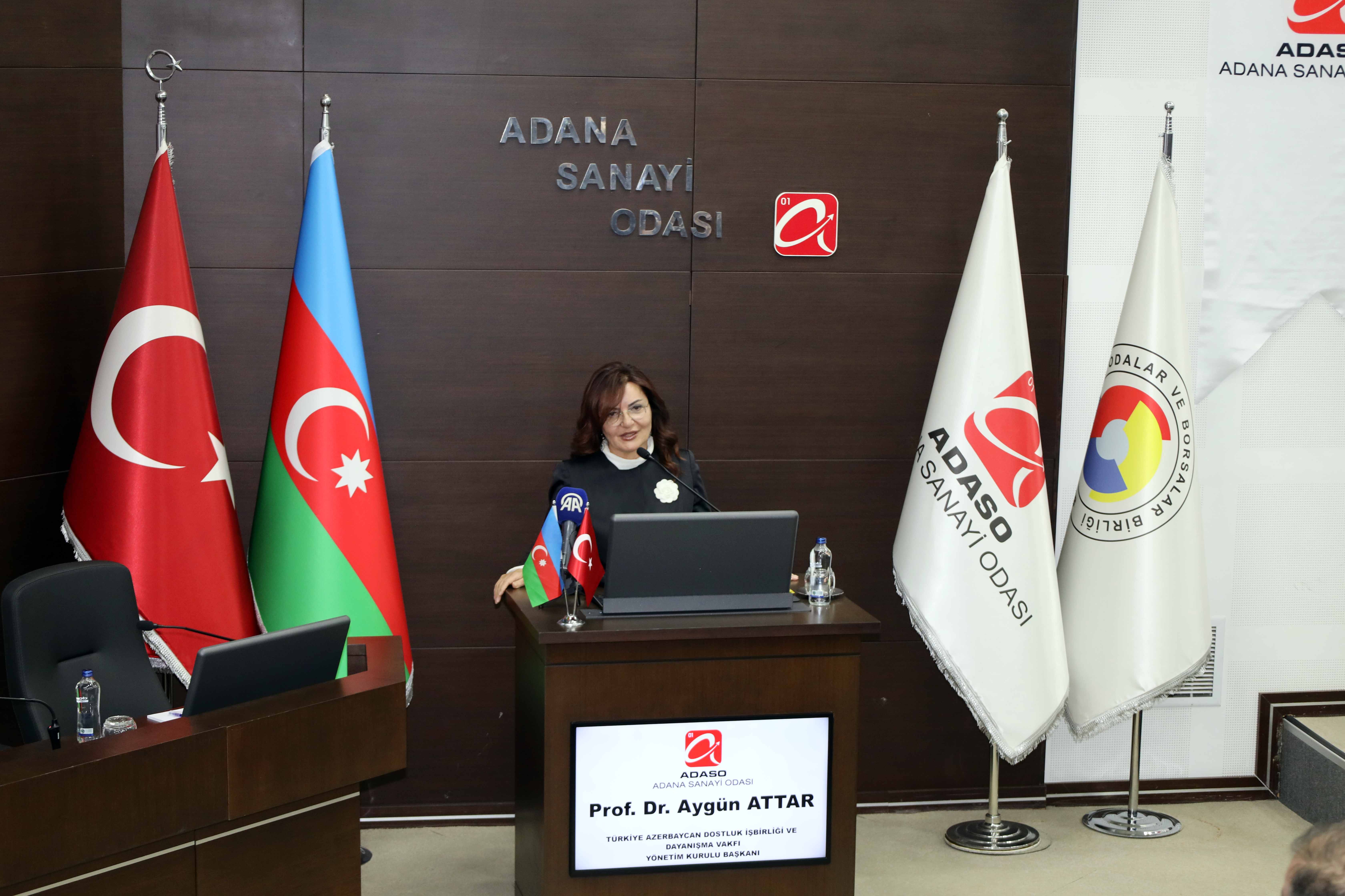 Türkiye ile Azerbaycan arasında daha önce kurulan petrol boru hattının, iki ülke arasında kardeşlik ilişkisinin müttefiklik ilişkisine dönüşmesinde temel köprü olan ekonomik iş birliğinin en baskın örneği olduğunu ifade eden Attar, şunları kaydetti; "Biz bu toplantının ilkini Bakü'de yaptık. Türkiye'deki ilkini ise Adana'da yapıyoruz. Neden Adana? Söylediğim o hattın etkisi var, verimli Çukurova'nın burada etkisi var. Ama en önemlisi 30 sene boyunca Azerbaycan'ın kederli gününde ağlayan, Azerbaycan'ın gününde sevincini herkesten en fazla güzel şekilde ortaya koyan Adanalıların etkisi var."