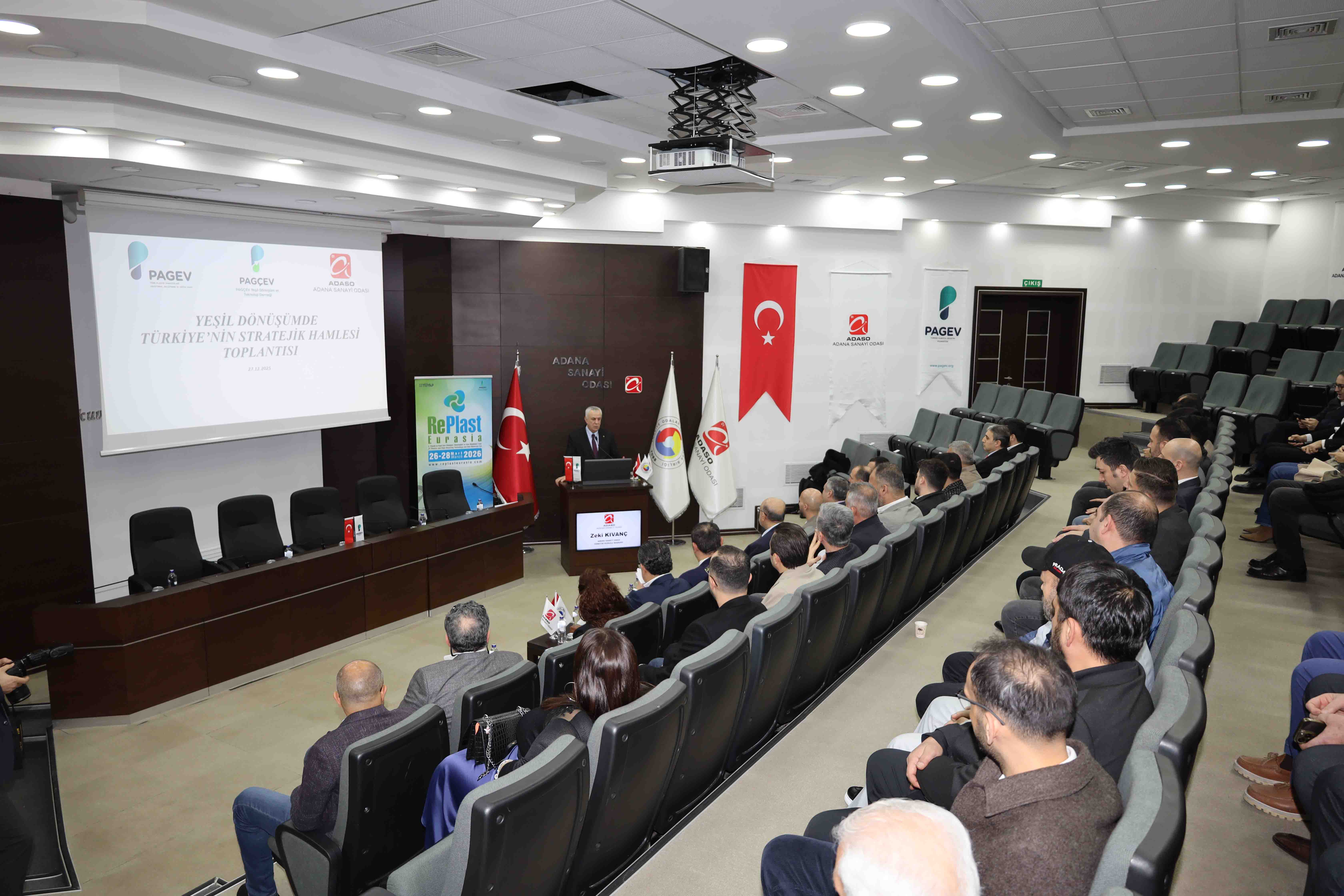 Adana Sanayi Odası (ADASO), Türk Plastik Sanayicileri Araştırma Geliştirme ve Eğitim Vakfı (PAGEV), Türk Plastik Sanayicileri Araştırma, Geliştirme ve Eğitim Vakfı Geri Dönüşüm İktisadi İşletmesi (PAGÇEV) iş birliğiyle düzenlenen Yeşil Dönüşümde Türkiye’nin Stratejik Hamlesi toplantısında, plastik sektörünün geleceği masaya yatırıldı. Toplantıda, Avrupa’nın Endüstriyel Sadeleştirme hamlesinin Türkiye için dev bir fırsat penceresi açtığı ve Türkiye’nin geri dönüşümde küresel bir merkez olma potansiyeli vurgulandı.