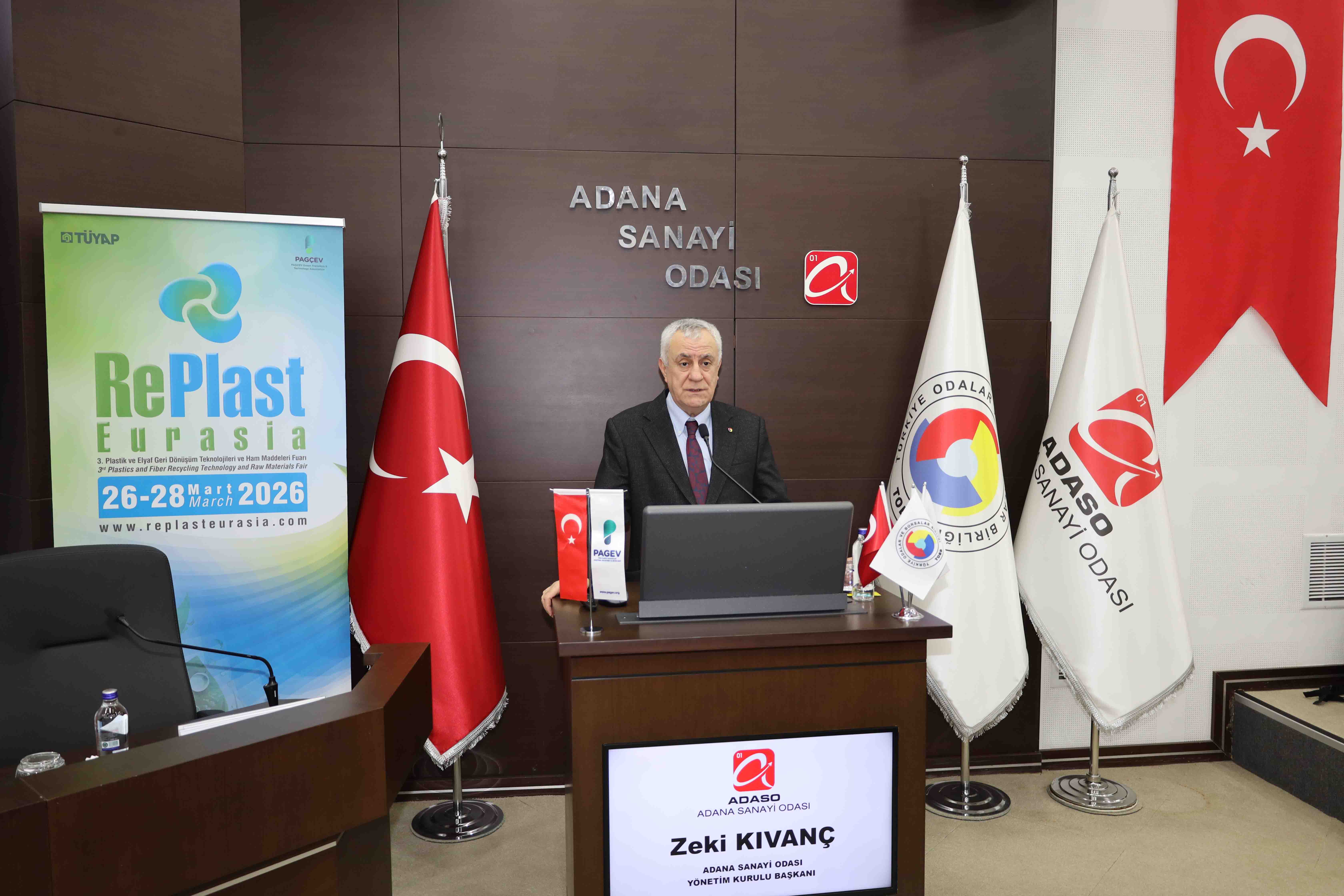 Sakıp Sabancı Toplantı Salonu'nda yapılan etkinliğe, TOBB Yönetim Kurulu Üyesi ve Adana Sanayi Odası Yönetim Kurulu Başkanı Zeki Kıvanç, TOBB Plastik, Kauçuk, Kompozit Sanayi Meclisi Başkanı, PAGEV ve PAGÇEV Başkanı Yavuz Eroğlu ile plastik sektörü temsilcileri katıldı.