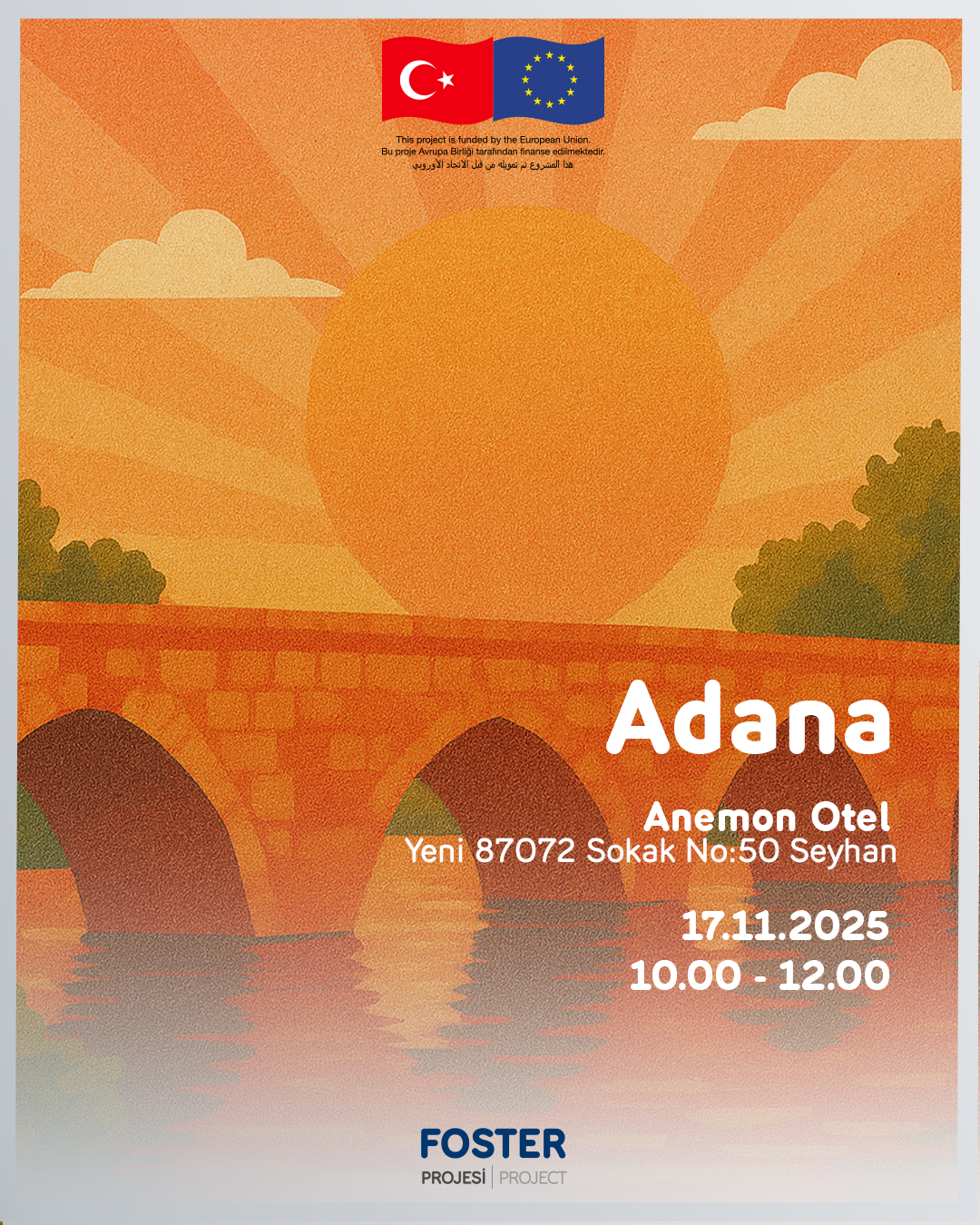 Avrupa Birliği tarafından finanse edilen KfW Kalkınma Bankası tarafından yönetilen ve KOSGEB tarafından yürütülen Türkiye’de Sosyal ve Ekonomik Uyumu Teşvik Etmek İçin Özel Sektörün Güçlendirilmesi FOSTER II Projesi kapsamında uygulamaya alınan İstihdam Taahhütlü KOBİ Destek (Geri Ödemesiz) Programı ve İstihdam Taahhütlü Finansman Destek Programı tanıtım toplantısı 17 Kasım 2025 tarihinde saat 10:00’da Anemon Otel’de gerçekleşecektir.