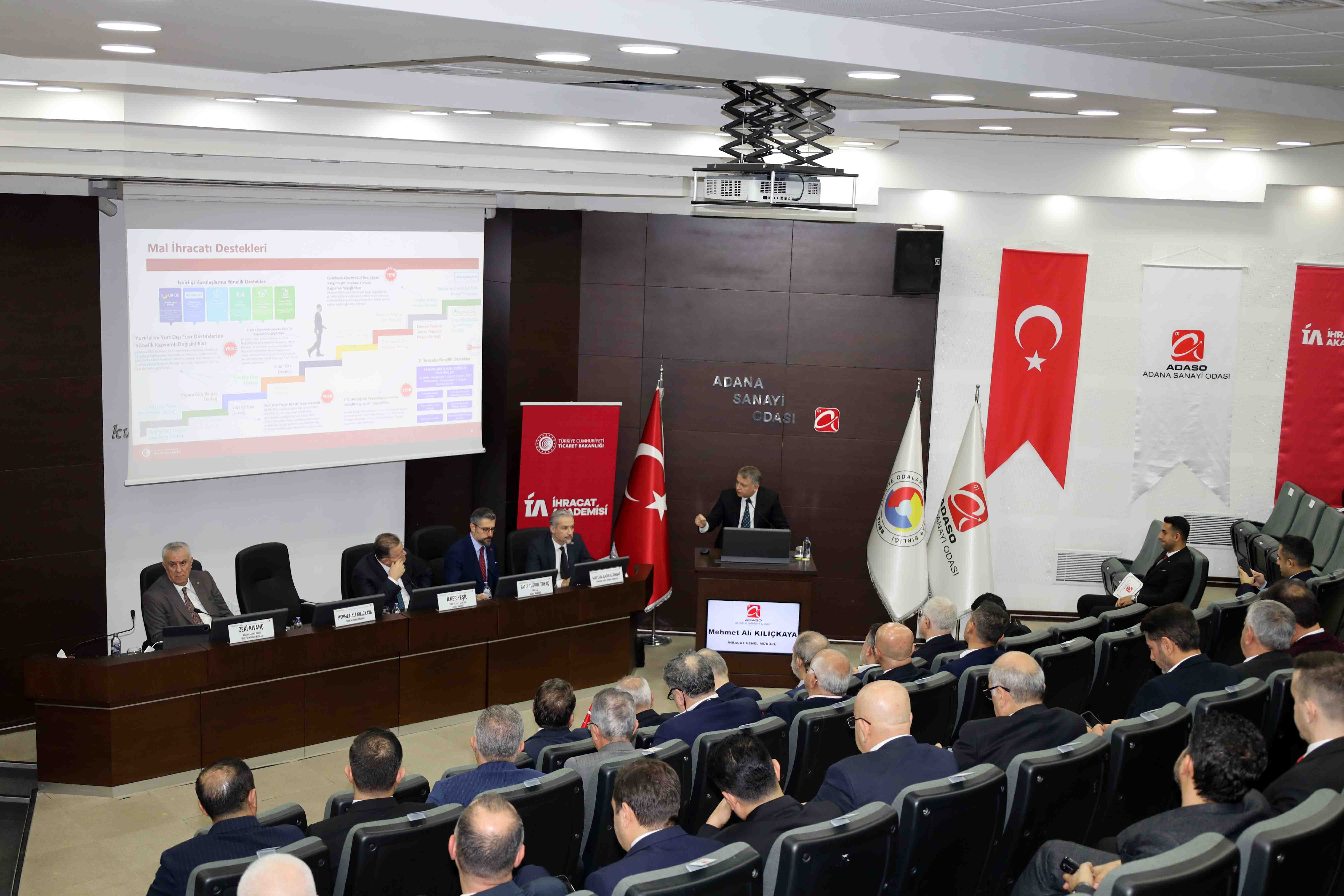 Adana Sanayi Odası Sakıp Sabancı Toplantı Salonu’nda gerçekleştirilen İhracatın Finansmanı ve Devlet Destekleri Paneli’ne T.C. Ticaret Bakan Yardımcısı Özgür Volkan Ağar, Çukurova Üniversitesi Rektörü Prof. Dr. Hamit Emrah Beriş, AK Parti Adana İl Başkanı Tamer Dağlı, Adana Sanayi Odası Meclis Başkanı İsrafil Uçurum, Akdeniz Tekstil ve Hammaddeleri İhracatçıları Birliği (ATHİB) Yönetim Kurulu Başkanı Fatih Doğan, kent protokolü ve çok sayıda iş dünyası temsilcisi katılım sağladı.