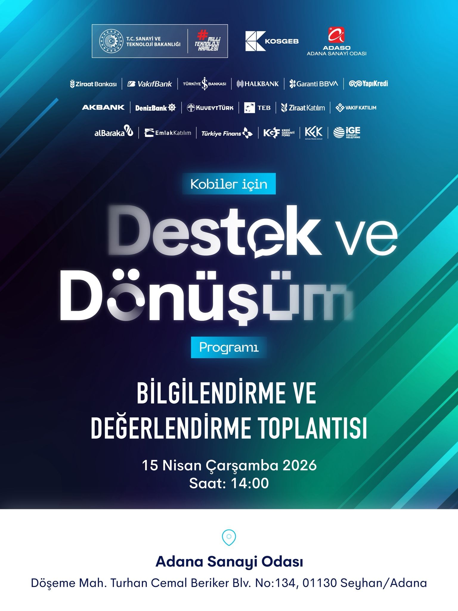 Bu kapsamda, Odamız ev sahipliğinde, KOSGEB Başkanı Sayın Ahmet Serdar İbrahimcioğlu’nun katılımlarıyla 15 Nisan Çarşamba günü saat 14:00’de “KOBİ’ler İçin Destek ve Dönüşüm Programı Bilgilendirme ve Değerlendirme Toplantısı” gerçekleştirilecektir.