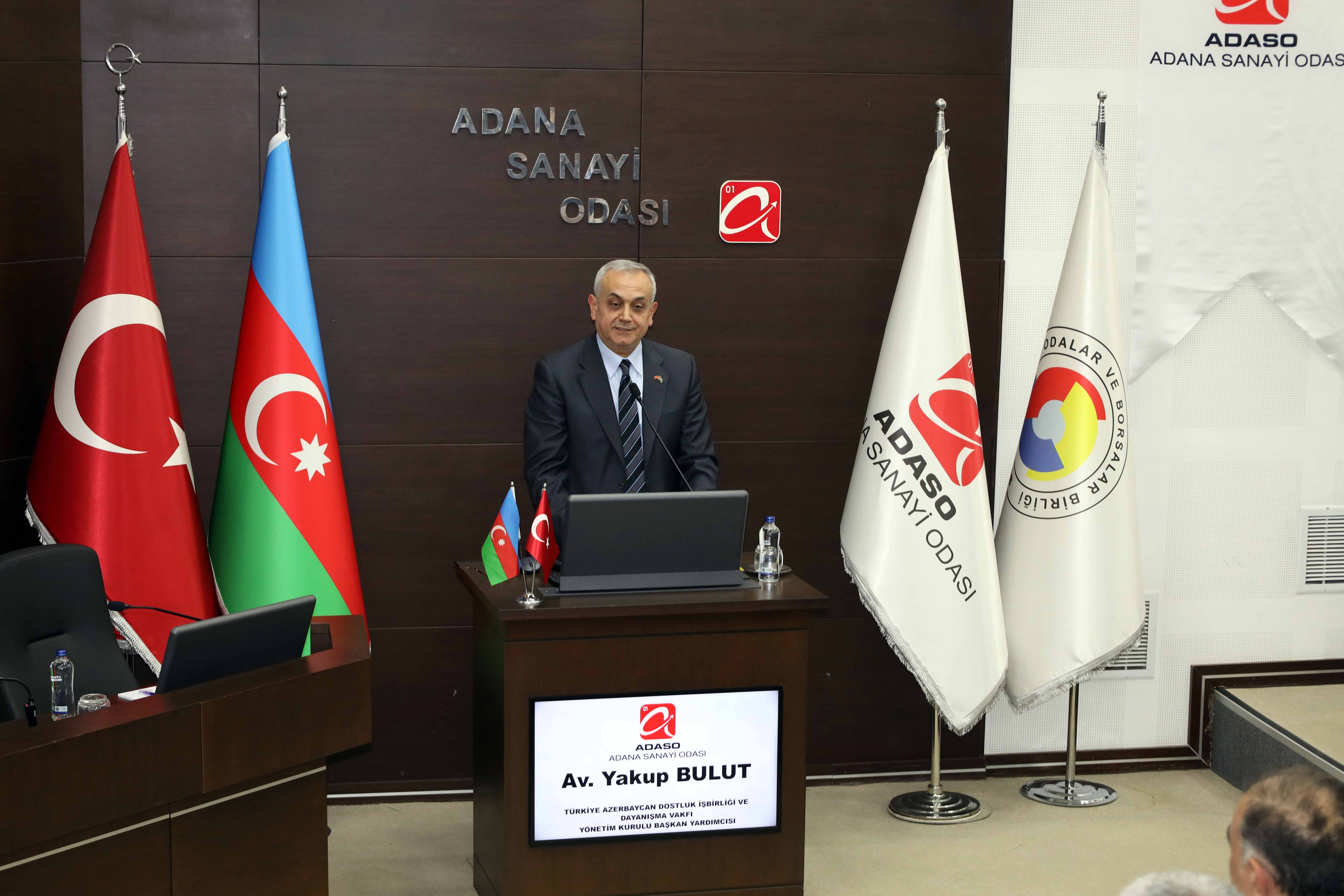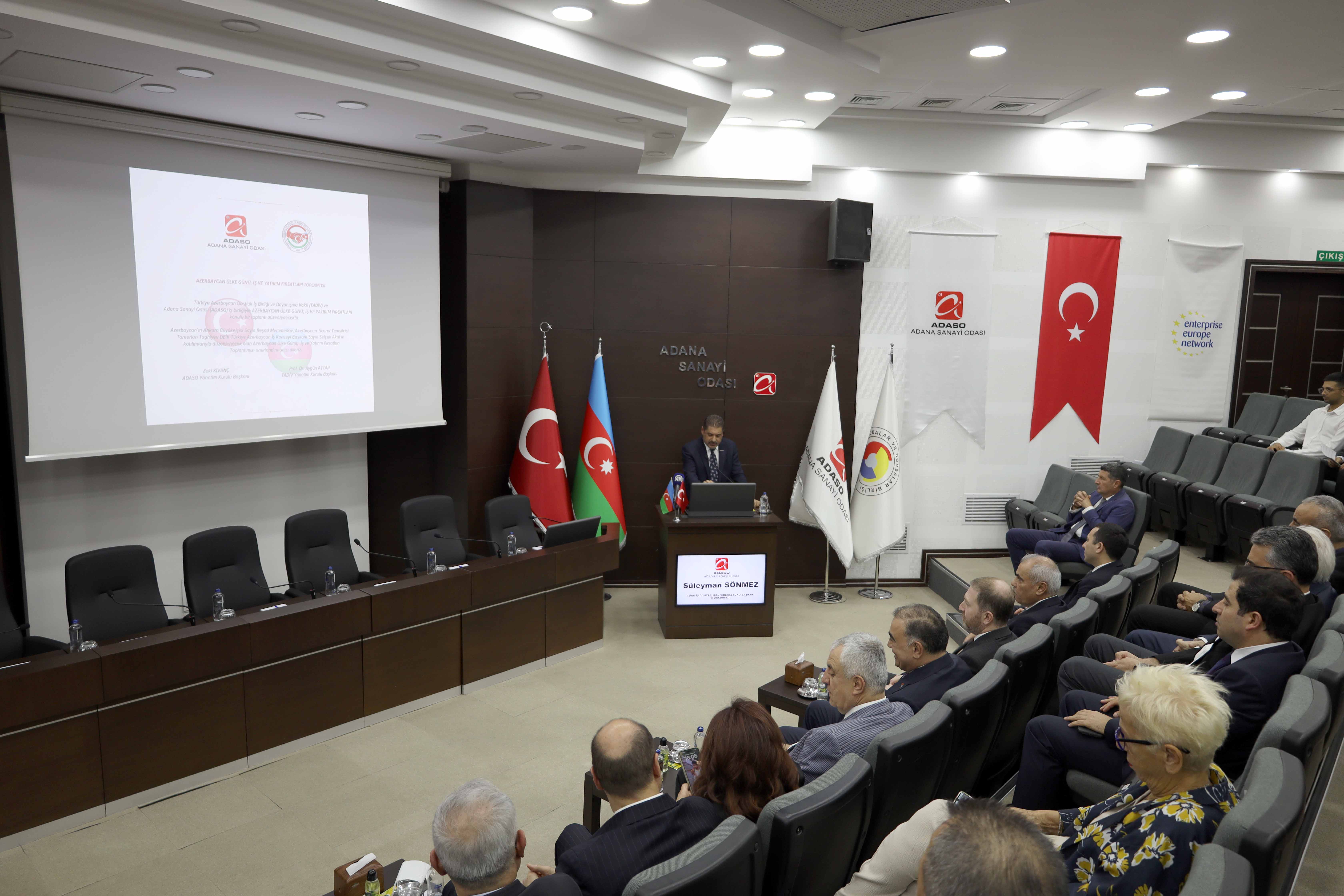 Adana Sanayi Odası (ADASO) ve Türkiye Azerbaycan Dostluk İş Birliği ve Dayanışma Vakfı (TADİV) iş birliğinde "Azerbaycan Ülke Günü: İş ve Yatırım Fırsatları Toplantısı" gerçekleştirildi.
