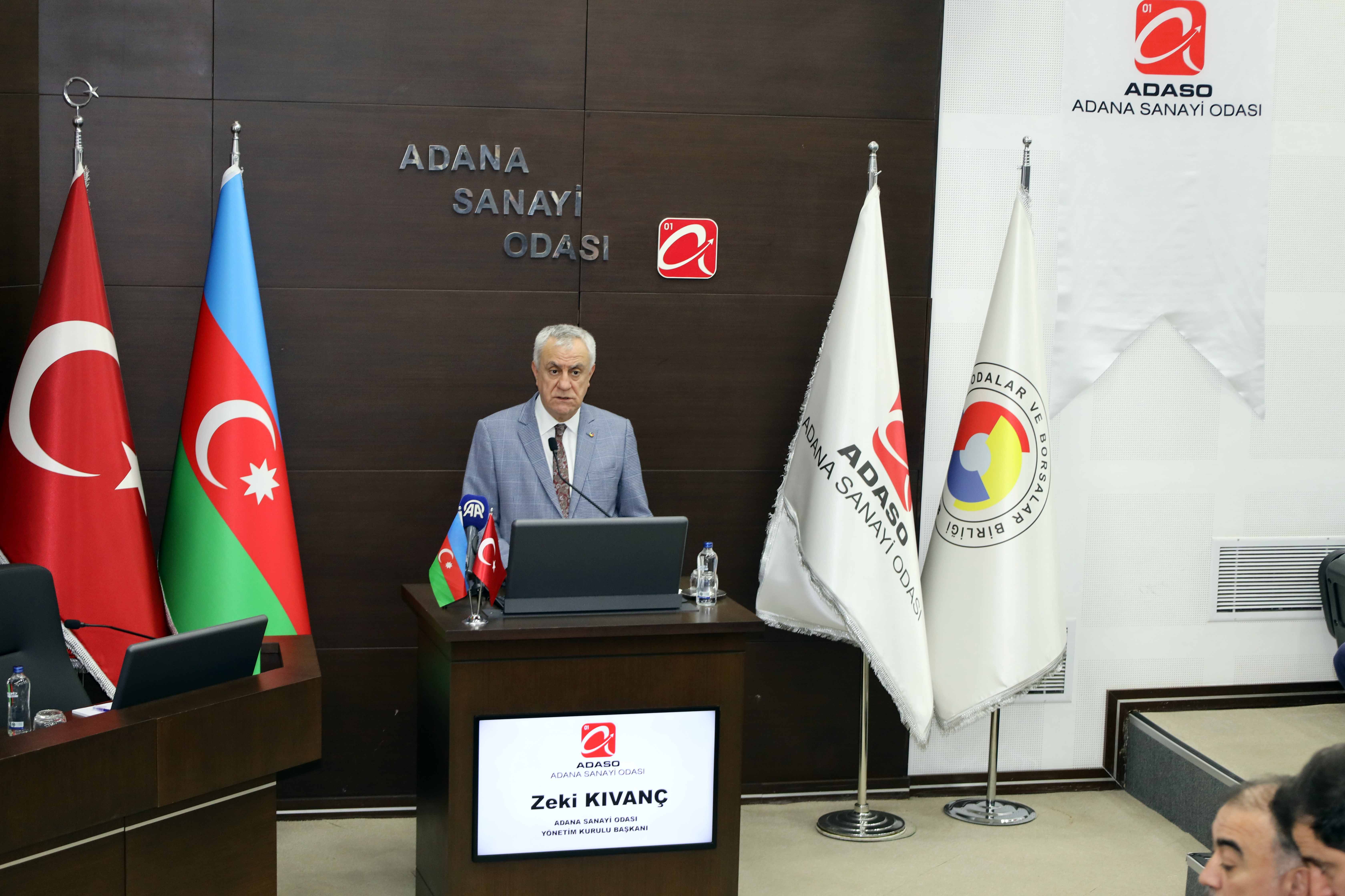 Adana Sanayi Odası Yönetim Kurulu Başkanı Zeki Kıvanç, Türkiye ve Azerbaycan arasındaki ticaret hacminin artırılması gerektiğini ifade etti. İki ülke arasındaki 15 milyar dolarlık ticaret hedefine ulaşmak için lojistik engellerin kaldırılması gerektiğini belirten Başkan Kıvanç, Zengezur Koridoru ve Bakü-Tiflis-Kars demir yolu hattının önemine dikkat çekti.