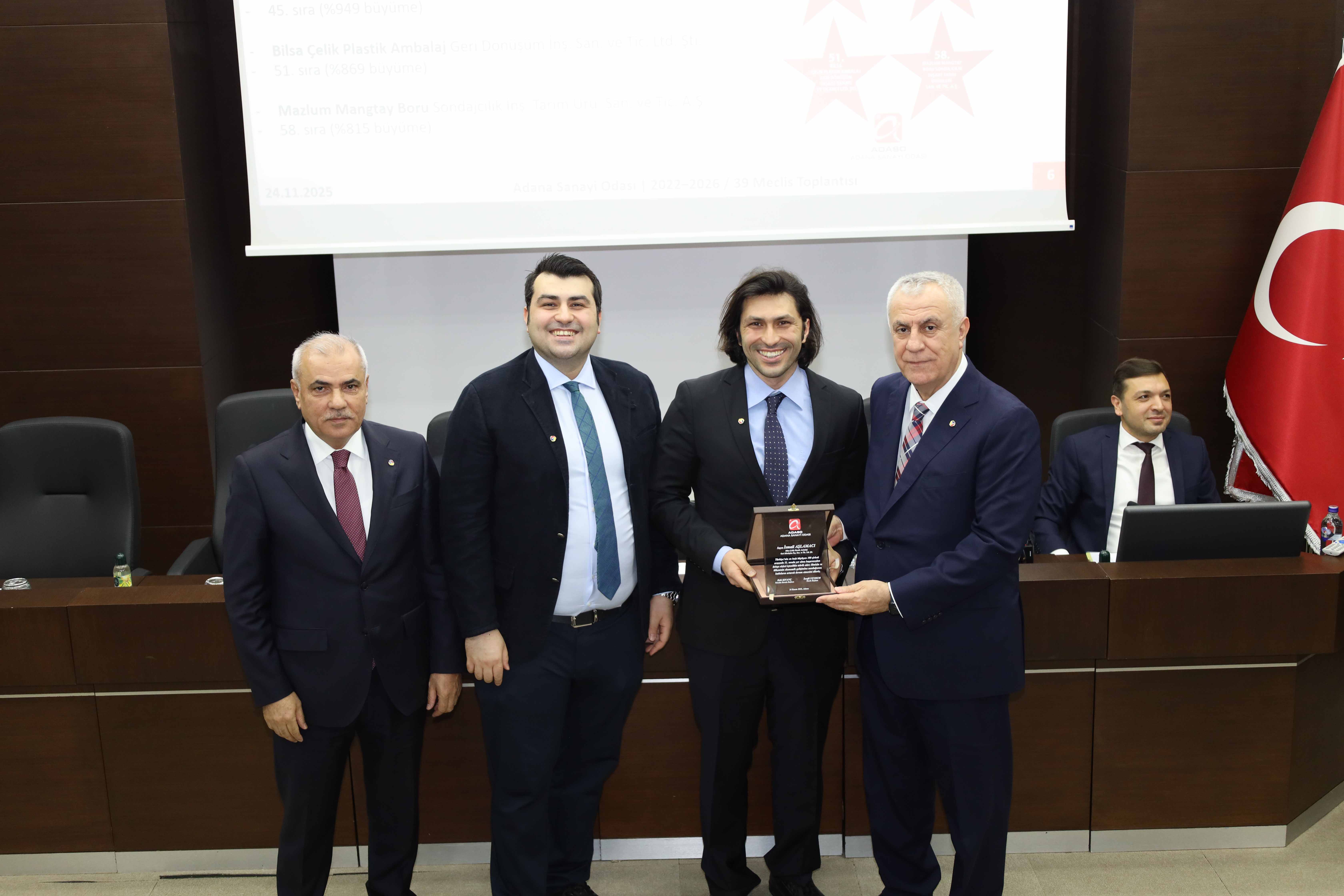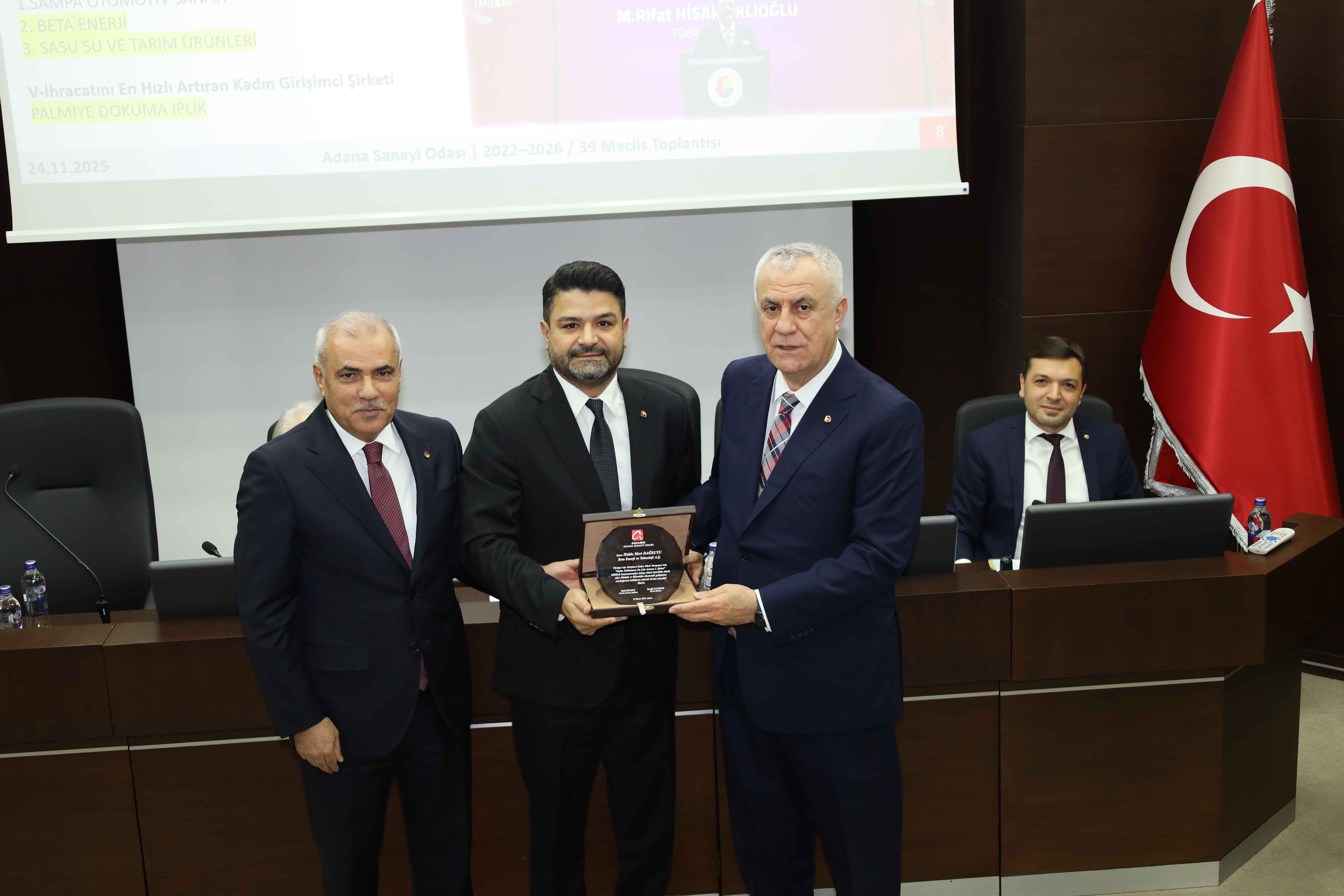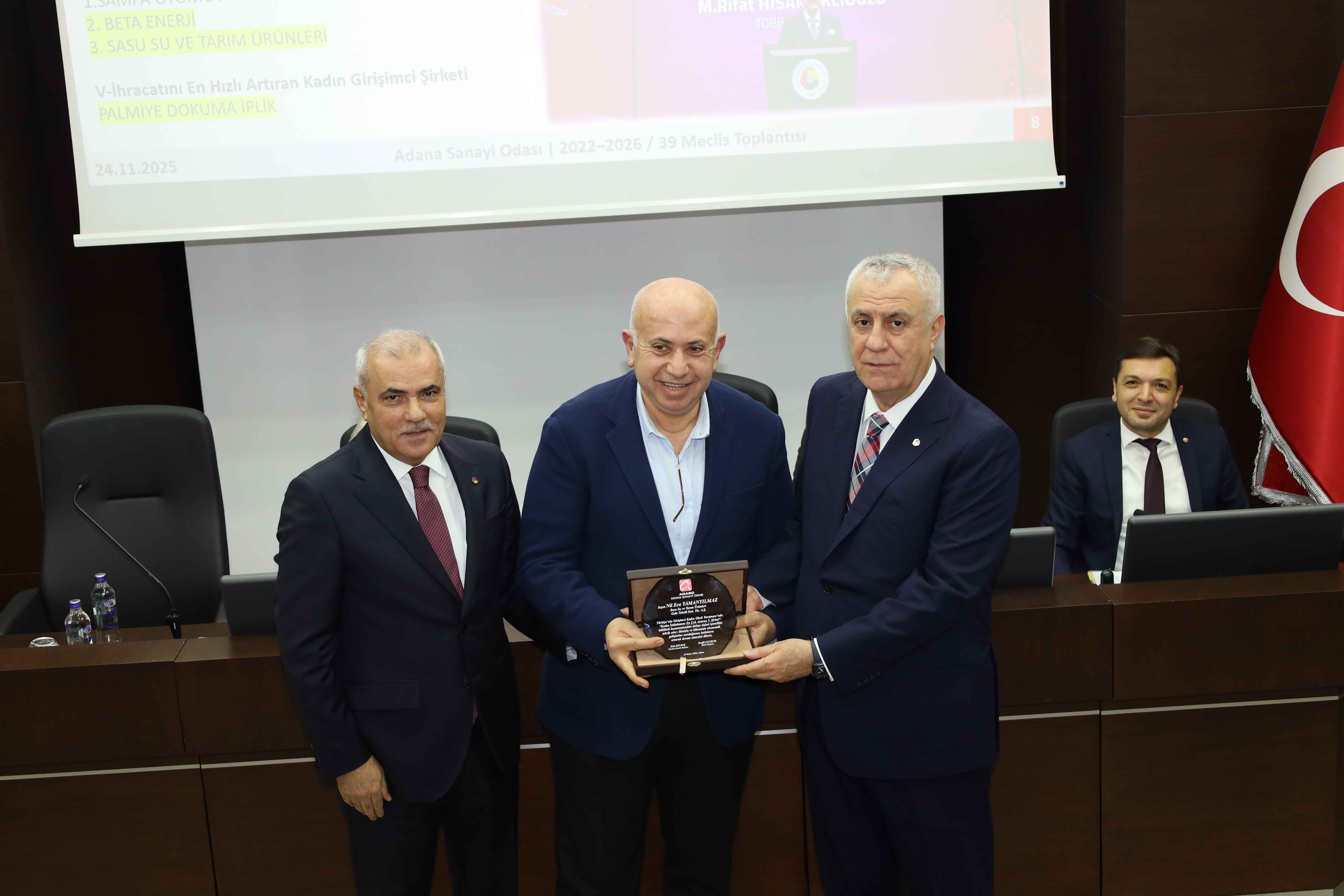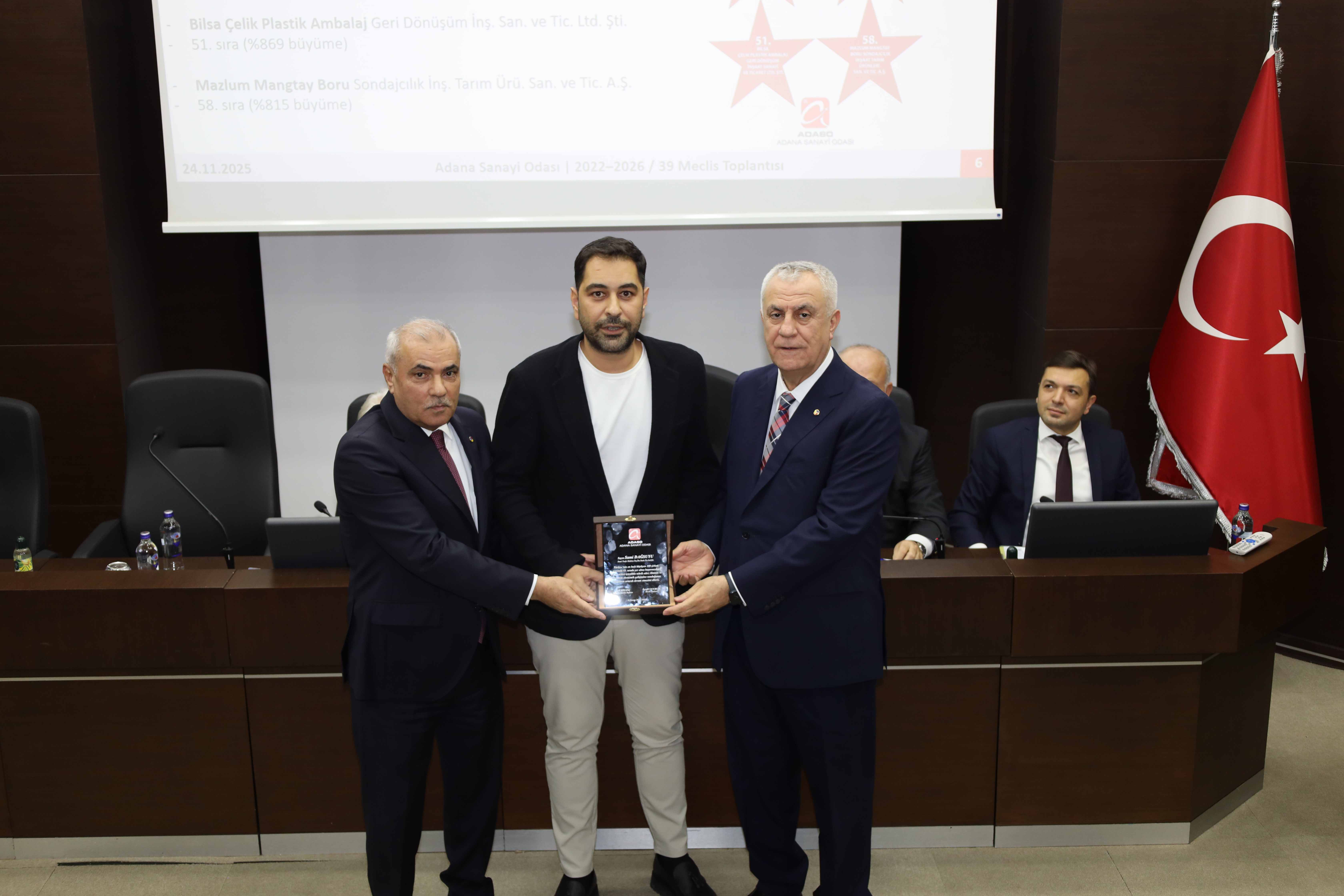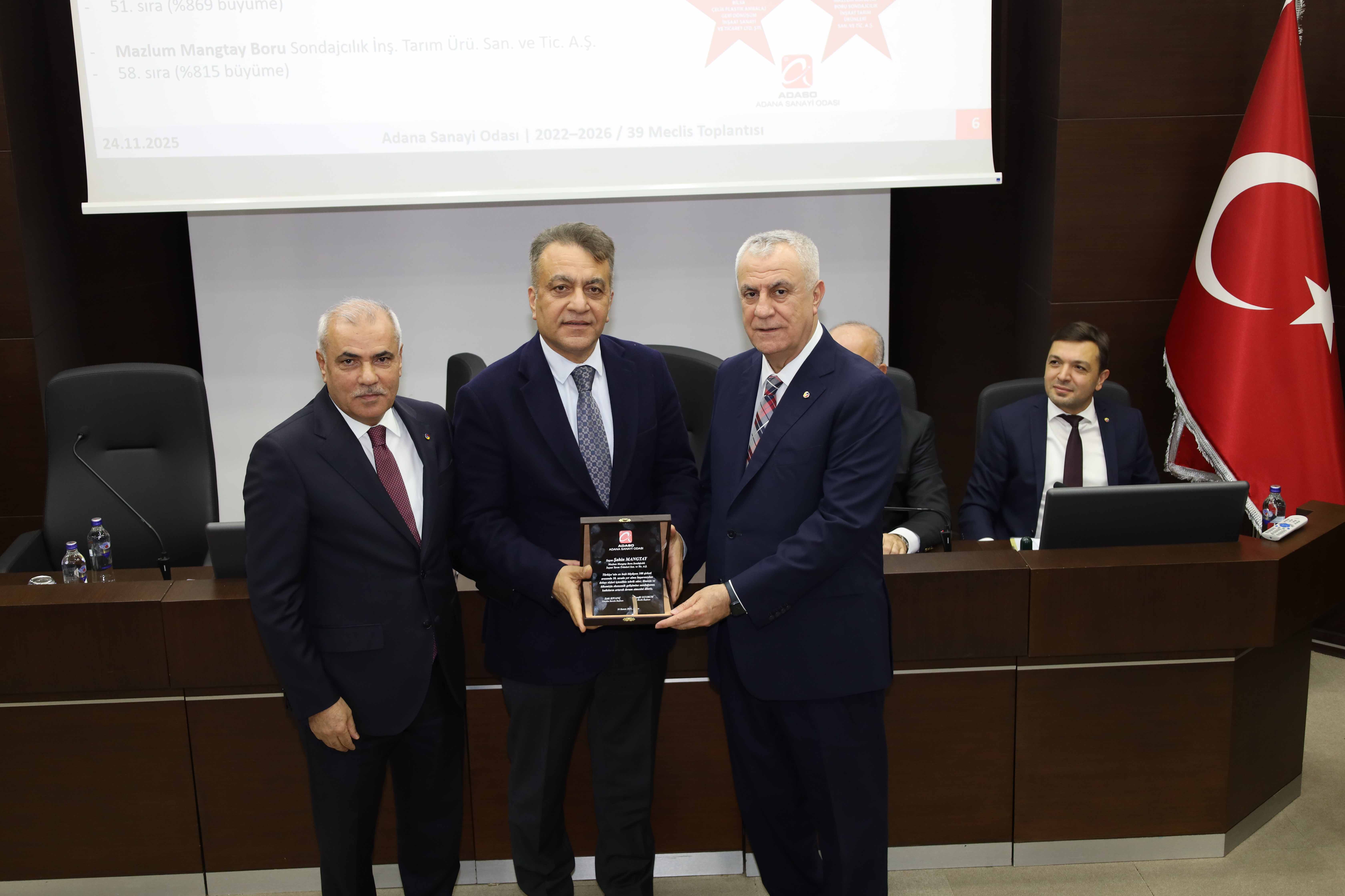 Adana Sanayi Odası Kasım Ayı Meclis Toplantısı Meclis Başkanı İsrafil Uçurum başkanlığında gerçekleştirildi. Meclis Toplantısında, Türkiye Odalar ve Borsalar Birliği (TOBB) öncülüğünde düzenlenen Türkiye’nin En Hızlı Büyüyen 100 Şirketi ile Türkiye’nin Girişimci Kadın Gücü Yarışması’nda dereceye giren 7 firmaya başarı plaketleri verildi.